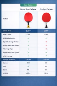 So you’ve decided to get into ping pong. Awesome choice! It’s fun, active, and something you can enjoy for a lifetime. But now comes the tricky part: picking your first paddle. If you’ve been doing any research, you’ve probably come across two names again and again: the Pro Spin Carbon and the SANWEI BravoBee Carbon.