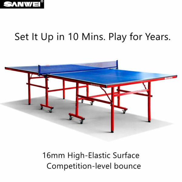 This indoor ping pong table uses 16mm thick elastic and durable MDF particleboard to restore the quality of professional table tennis matches and meet your various needs for professional training/learning skills/indoor table tennis entertainment