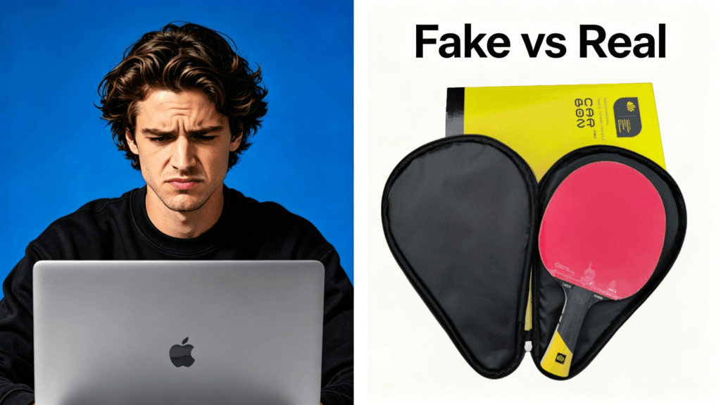 • No control/spin/speed ratings listed: Real paddles have measurable specs. If the listing only says “professional” but no numbers, it’s fake.
